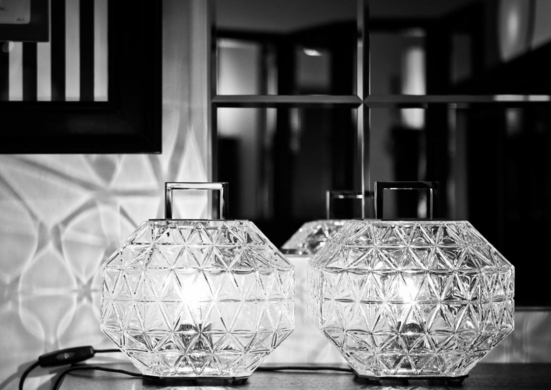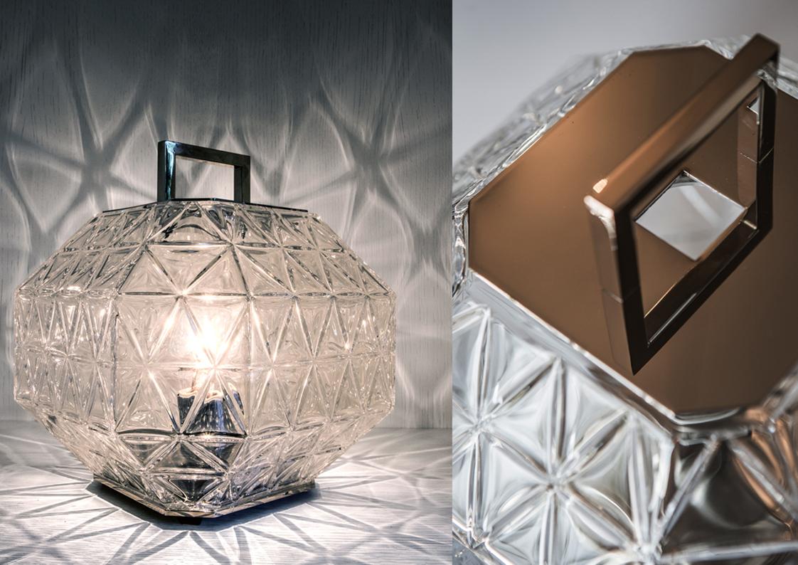 materials: engraved crystal + polished metal