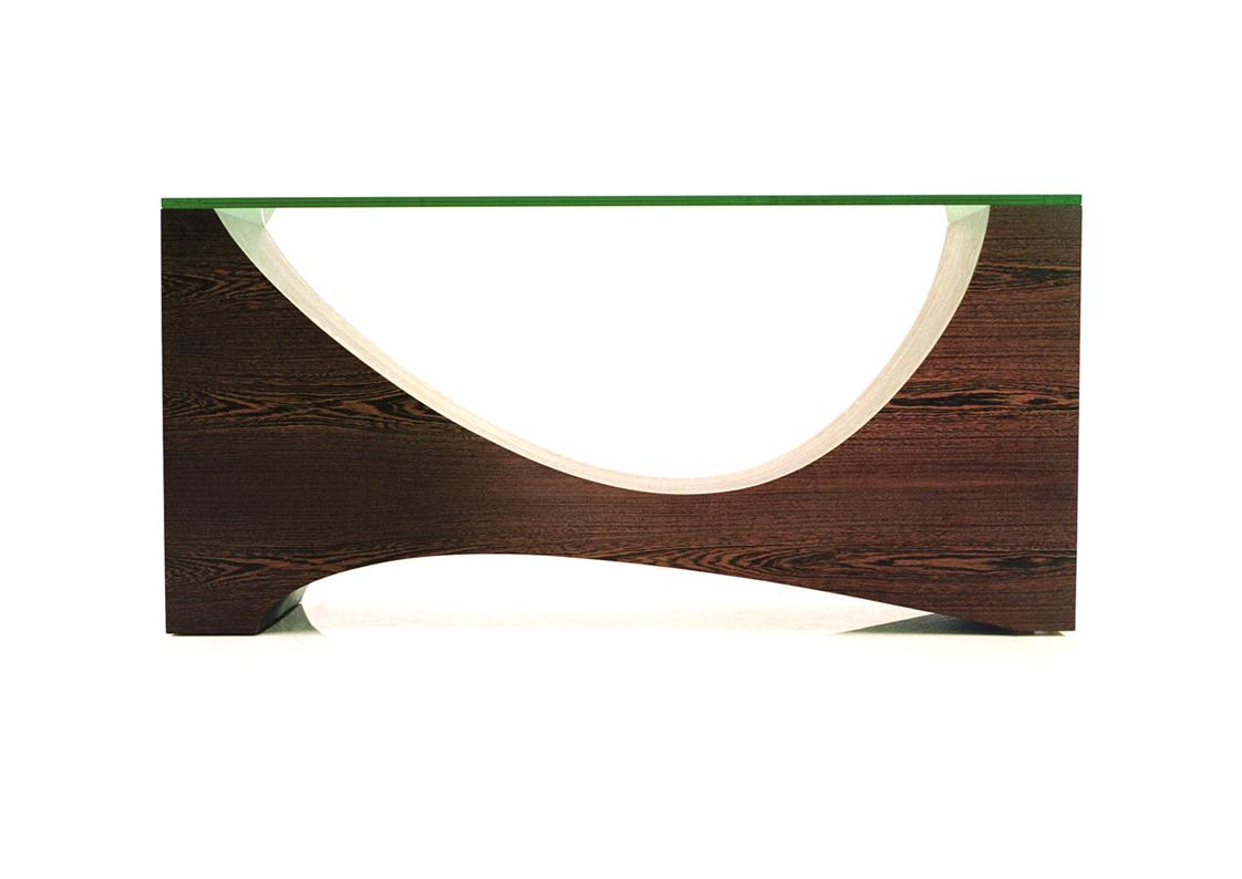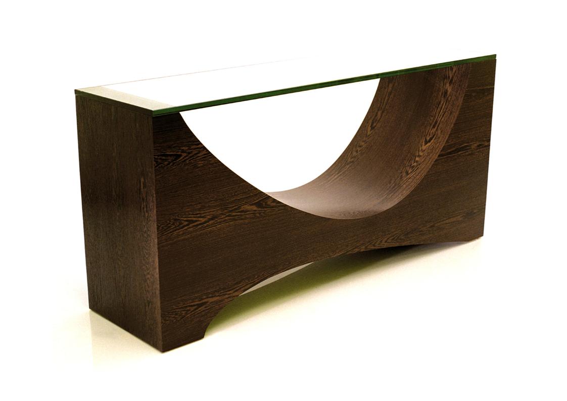 The Ulm Console by William Earle is a study in sculptural balance and material integrity. Crafted from solid wood & wood veneer, it features distinctive interlocking forms that create a rhythmic composition of mass and negative space. The design reveals the structural language of contemporary studio furniture—where precision joinery and careful proportion shape the overall form. Both architectural and refined, the Ulm Console transforms a functional surface into a work of collectible design. Rooted in craftsmanship and expressive geometry, it introduces warmth, texture, and sculptural presence to modern interiors. Available in several wood finishes and top options, including glass, wood or stone
