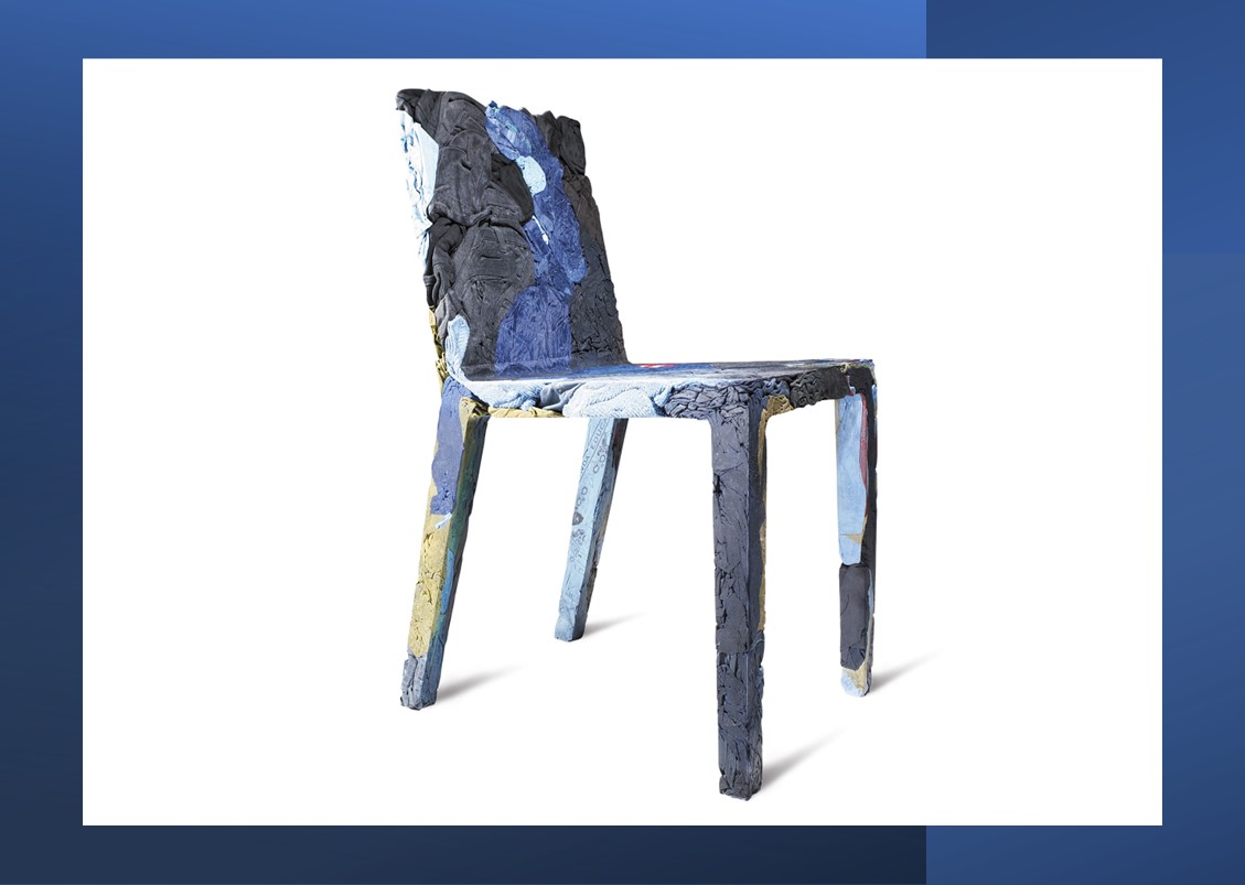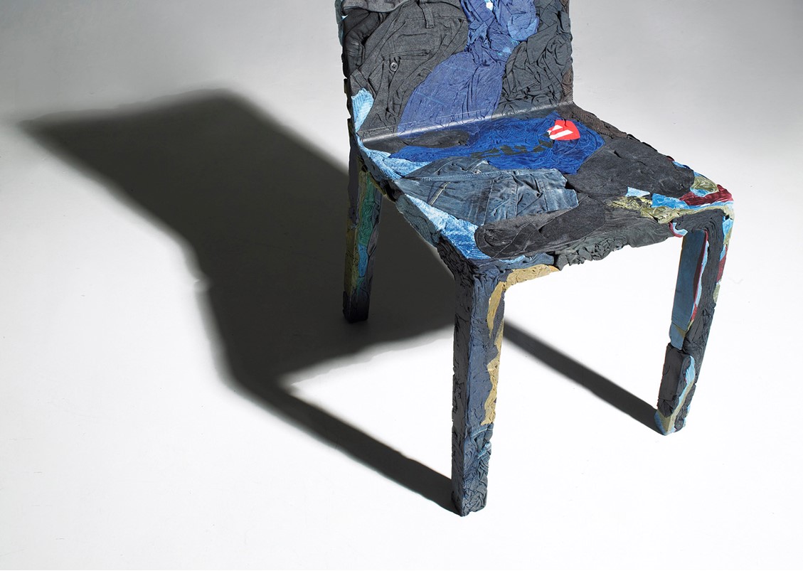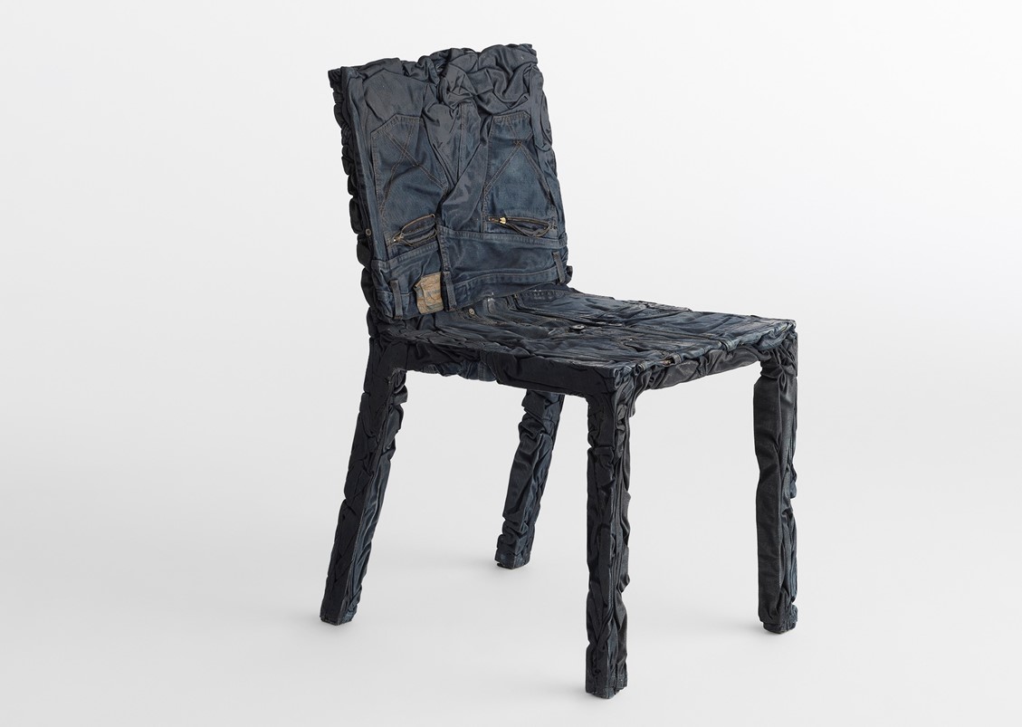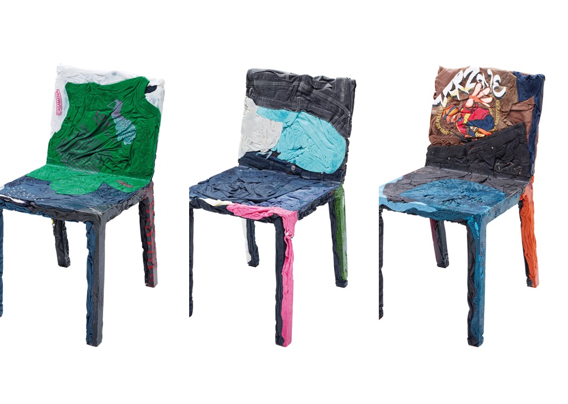 The race towards the future and the desire to keep the past alive coexist in the Upcycle Denim Series (chair, bistro table, and coffee table) that gives new life to clothes which are unconscious memory capsules. Comprised of jeans + cotton t-shirts mixed with a special resin.