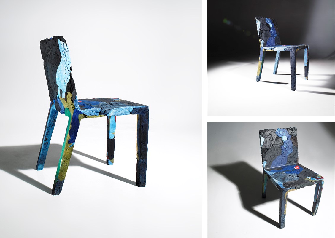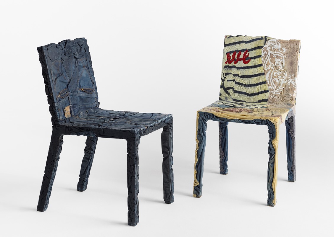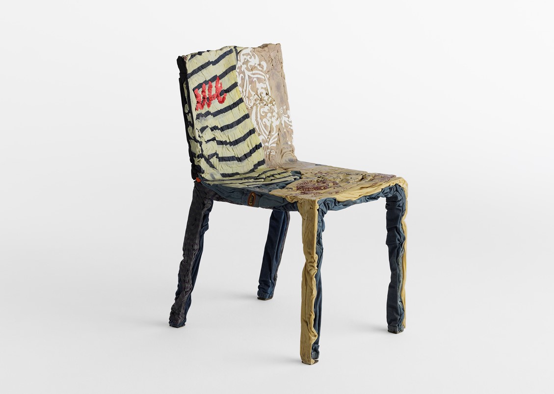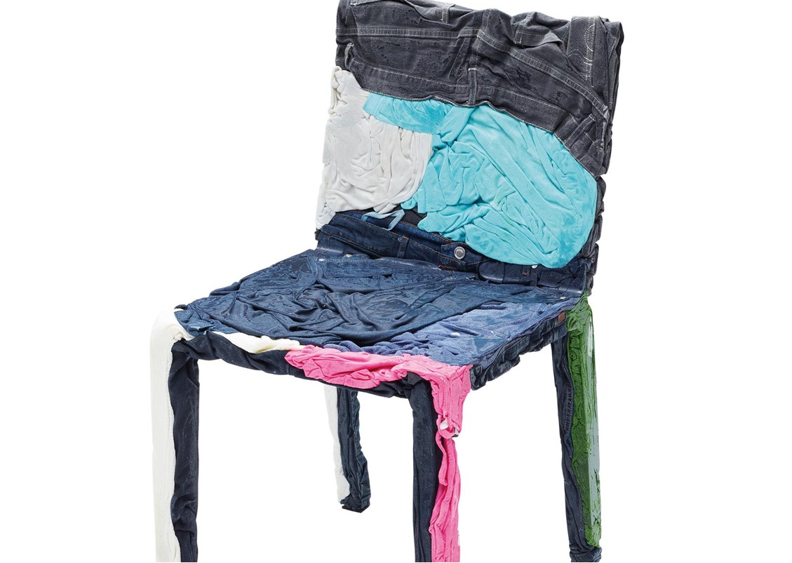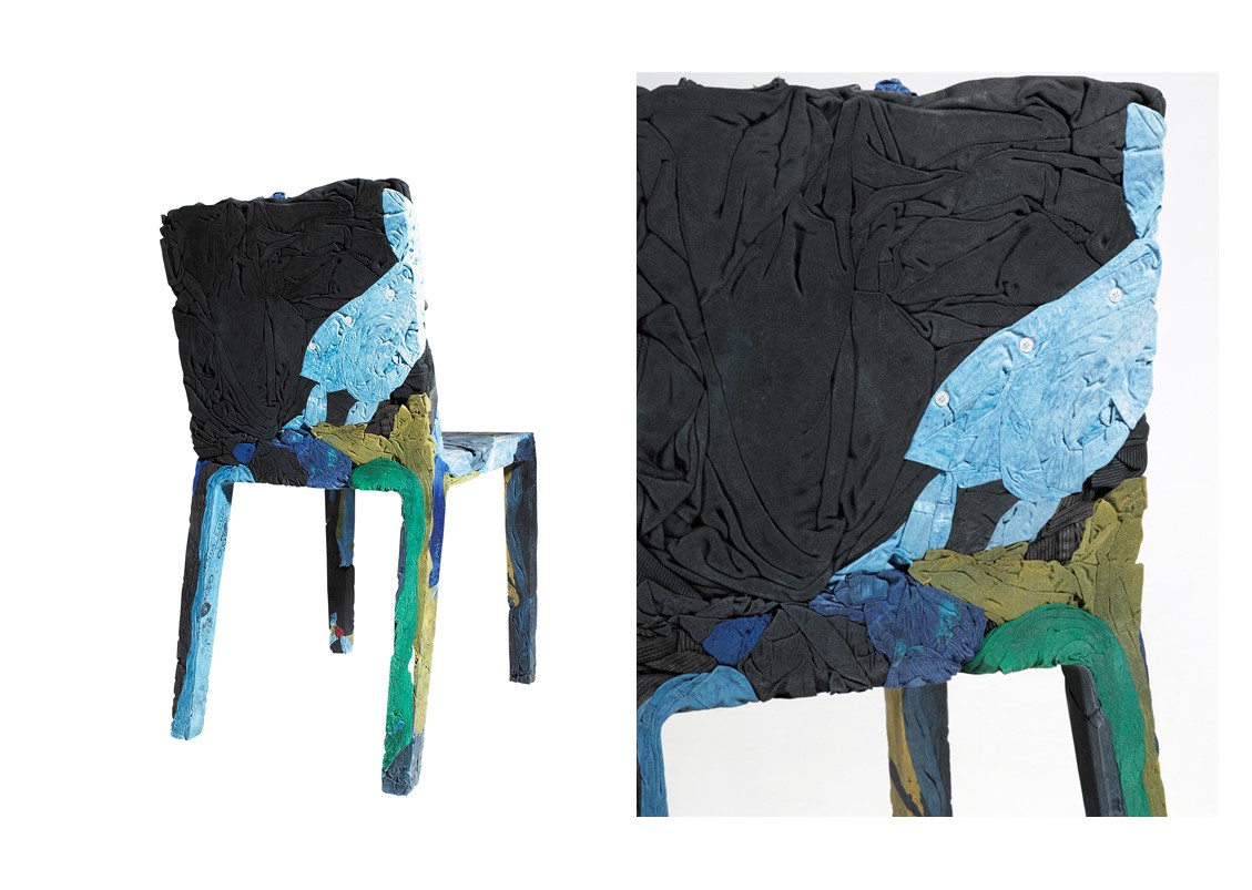 The race towards the future and the desire to keep the past alive coexist in the Upcycle Denim Series (chair, bistro table, and coffee table) that gives new life to clothes which are unconscious memory capsules. Comprised of jeans + cotton t-shirts mixed with a special resin.