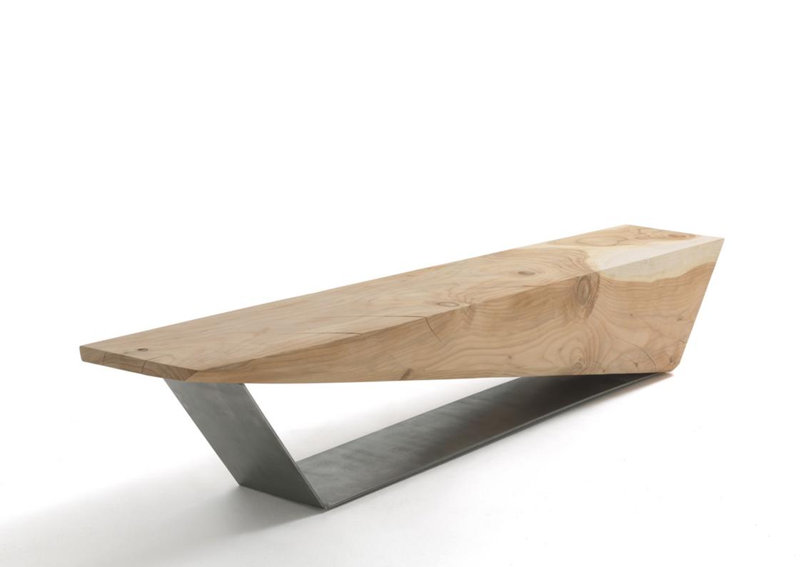 The Wedge Bench is part of the Cedar + Fire Series – constructed of solid cedar wood with a simple and linear geometrical shape that continues in the metallic base that functions as a container. Movements, cracks and changes in the appearance of the wood are intrinsic characteristics of these items and result from the natural settlement and diverse environmental conditions.