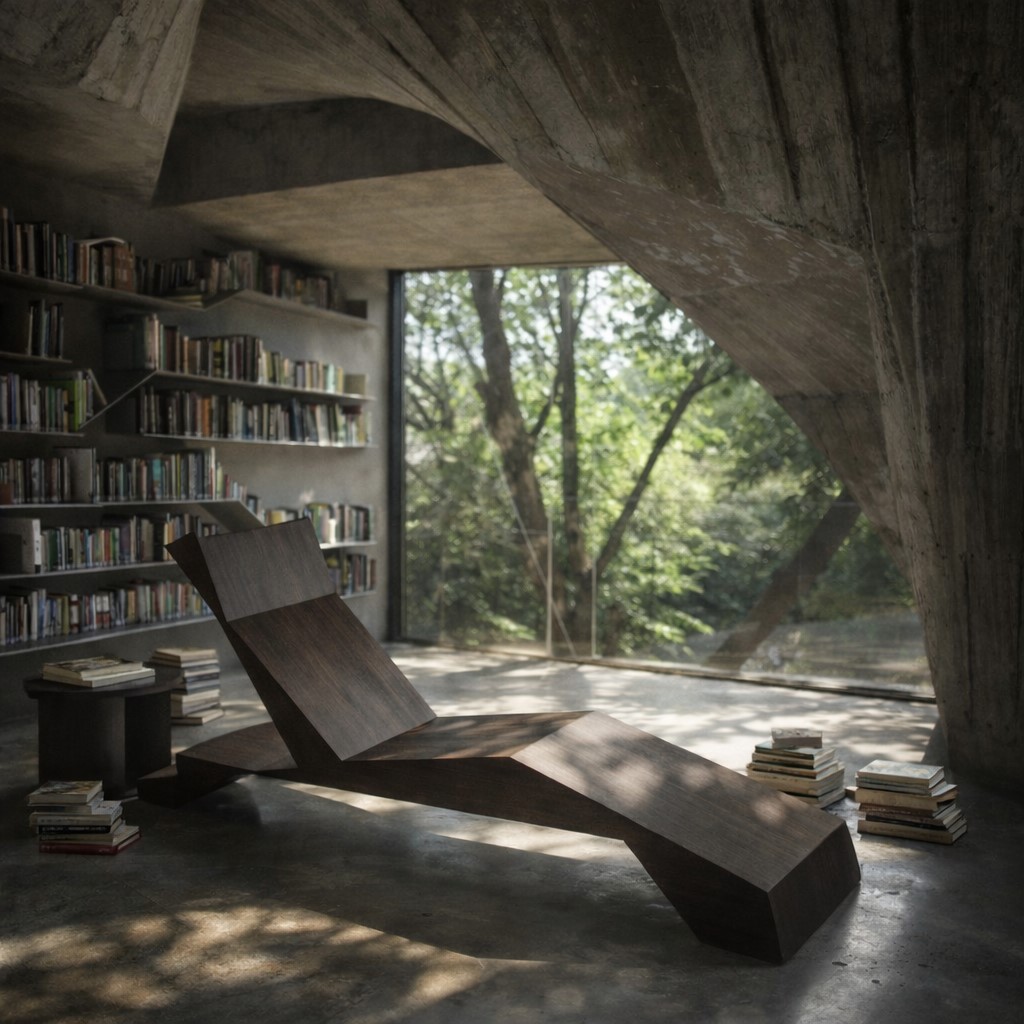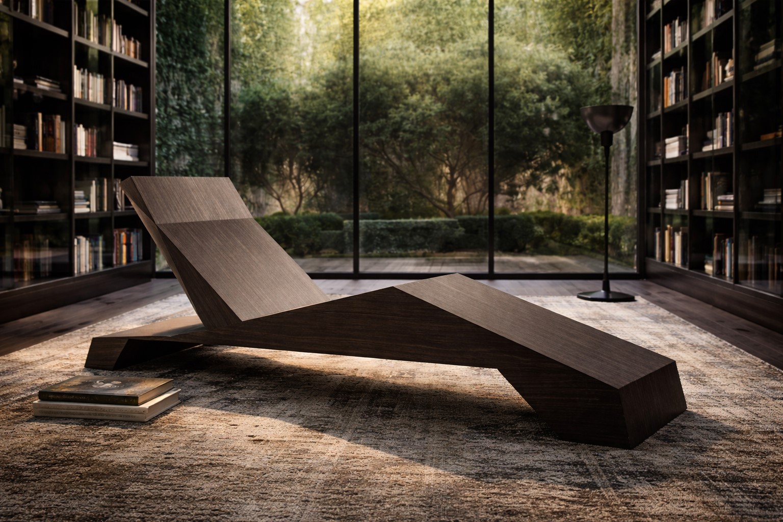 The Woodcutter Chaise by William Earle is a striking study in sculptural form and natural material. Carved from solid wood, its flowing contours reveal the character of the timber while showcasing the hand of the maker. The design balances raw expression with refined craftsmanship, allowing the grain, weight, and movement of the wood to shape the piece itself. Both lounge and art object, the Woodcutter Chaise embodies the spirit of contemporary studio furniture—where function, material, and form converge. Bold yet grounded, it introduces warmth, texture, and sculptural presence to modern interiors.