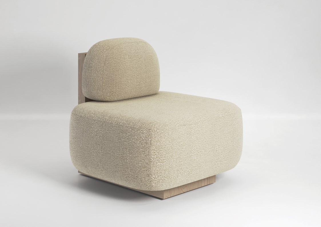 The Yoshida lounge chair is a minimal piece designed to look great from all angles. From the front, two oversized cushions seem to float, unsupported and balancing in place. From behind you see a large solid wood piece that acts as both the base and the back of the chair, containing within it the large fully upholstered seat and back. Available in different wood finishes and upholstery options. Wood internal structure with non-deformable foam in different densities and polyester fiber layer. Base and support in solid wood with felt glides.